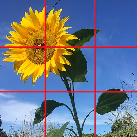 As you can see I have composed this image so that the main point of interest - the sunflower, is on the intersection of the horizontal and vertical third. As a bonus point I have also utilised the worms eye view to make a dramatic composition.